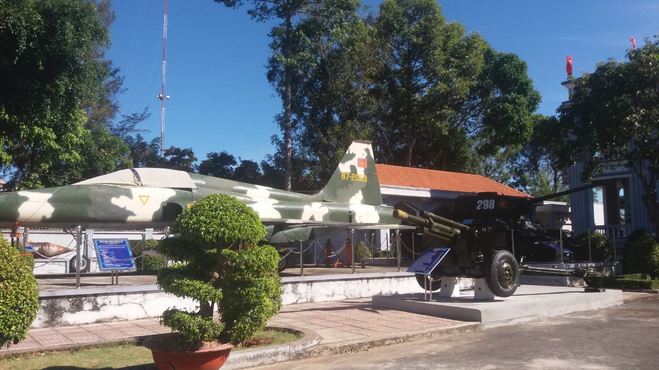 Hiện vật Máy bay F5E, Xe tăng T34 và Pháo 105mm (ảnh: Hùng Minh)