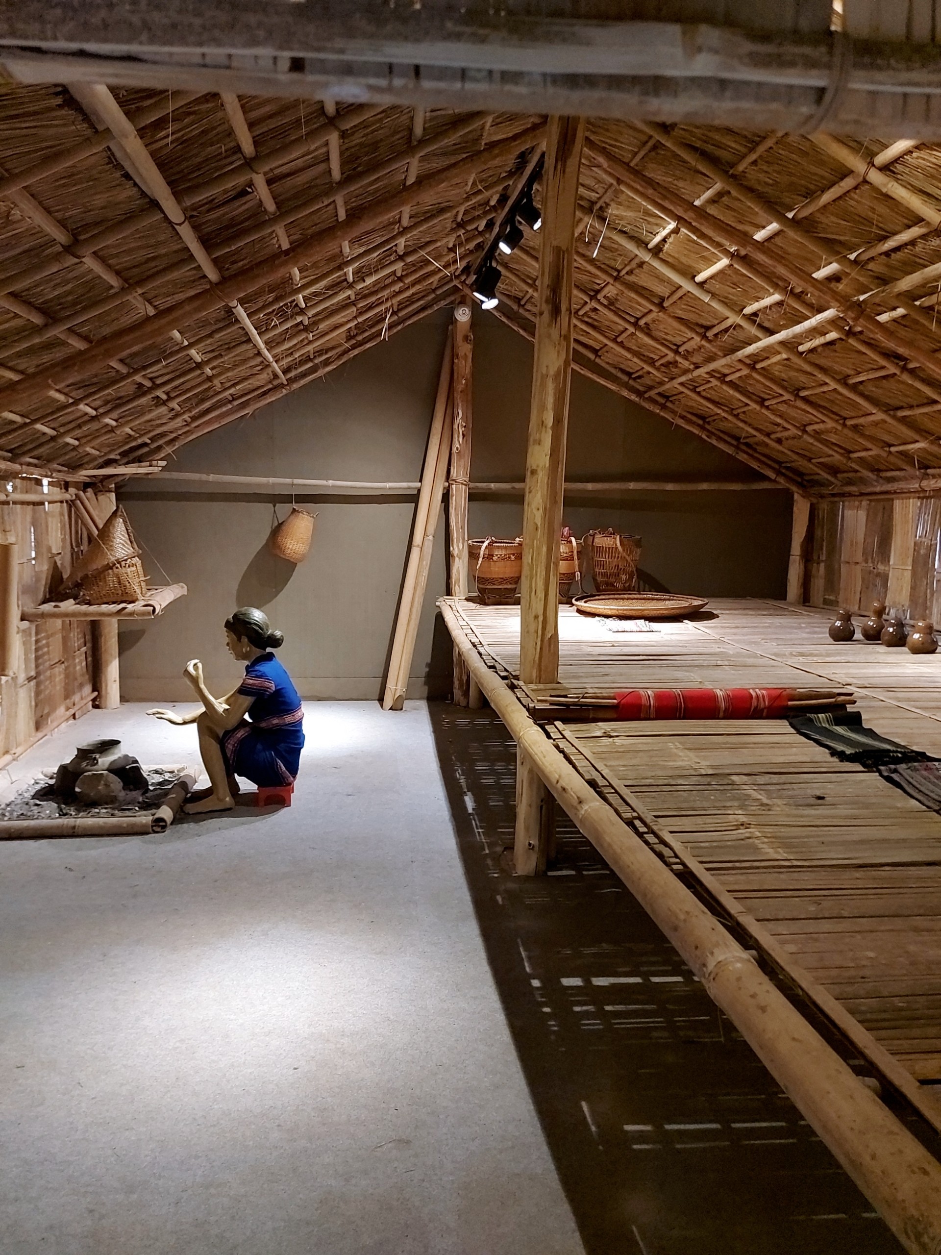 Mô hình một góc nhà ở truyền thống của người Xtiêng (ảnh: Phùng Ngạn)