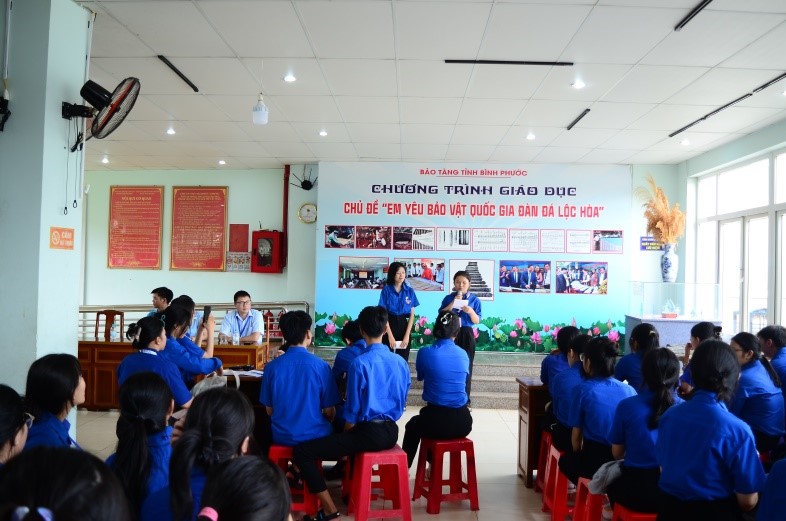 Trong hoạt động của chương trình, các em học sinh đã được Bảo tàng tỉnh hướng dẫn tham quan các phòng trưng bày tại Bảo tàng với các nội dung giới thiệu về lịch sử, văn hóa kinh tế – xã hội của tỉnh Bình Phước. Cũng trong hoạt động của chương trình, các em học sinh được tham gia các phần thi tìm hiểu về lịch sử văn hóa của địa phương và tham gia thi thuyết trình về bảo vật quốc gia Đàn đá Lộc Hòa. Với sự cuốn hút, bổ ích của không gian trưng bày tại Bảo tàng, cùng với các hoạt động tham quan và tham dự các phần thi đã lôi cuốn các em học sinh của trường THPT Nguyễn Du tham gia chương trình sôi nổi và náo nhiệt. Chương trình giáo dục “em yêu bảo vật quốc gia đàn đá Lộc Hòa” là hoạt động đầy ý nghĩa để các em học sinh có điều kiện tiếp xúc, trải nghiệm, học tập và vui chơi tìm hiểu về lịch sử, văn hóa, con người Bình Phước nói chung và bảo vật quốc gia Đàn đá Lộc Hòa nói riêng.