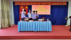 Ông Tô Văn Hoàng – Giám đốc Bảo tàng tỉnh ký kết giao ước thi đua năm 2022 với Chủ tịch công đoàn bộ phận Lò Văn Dinh (Ảnh: Nguyễn Thị Huyền)