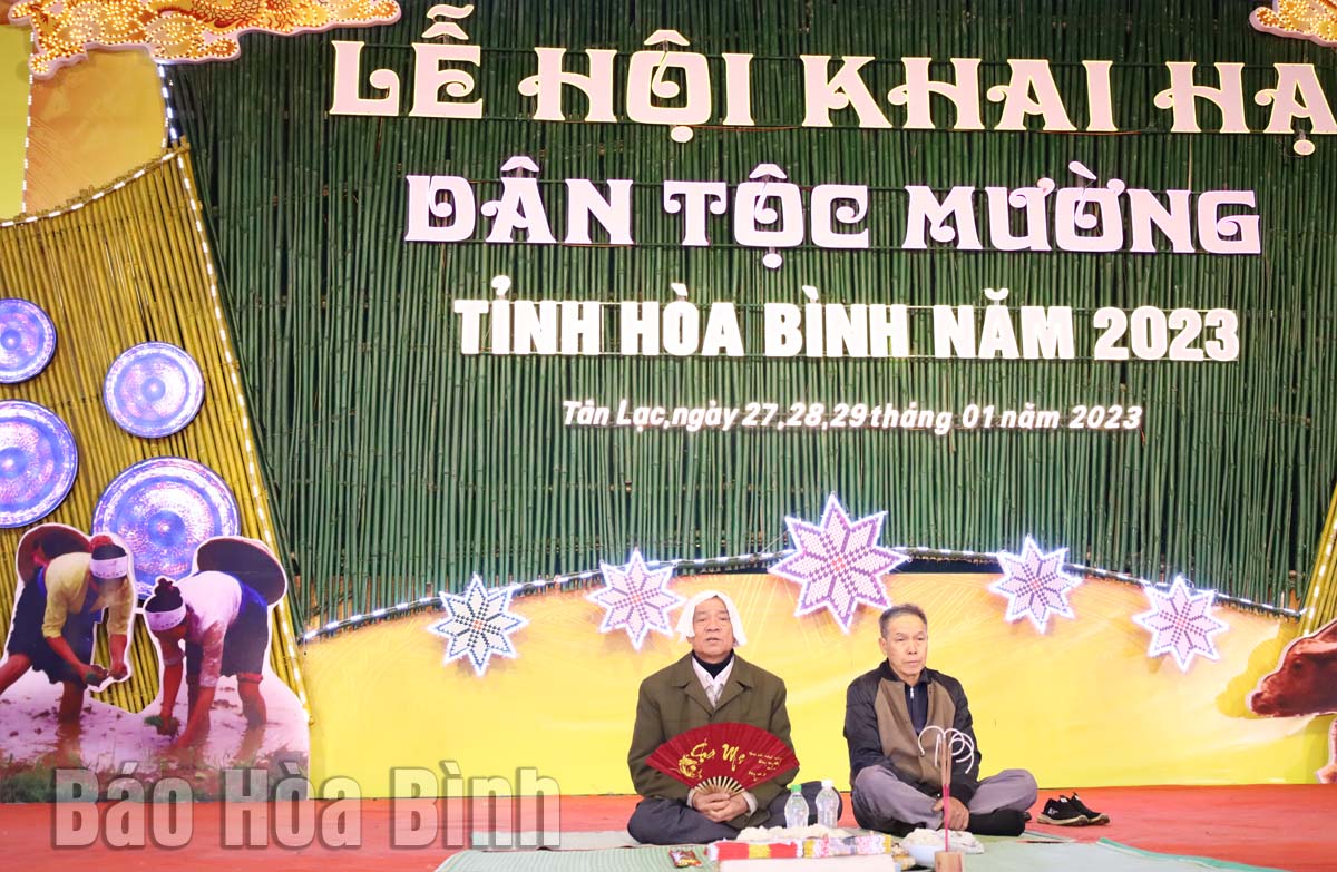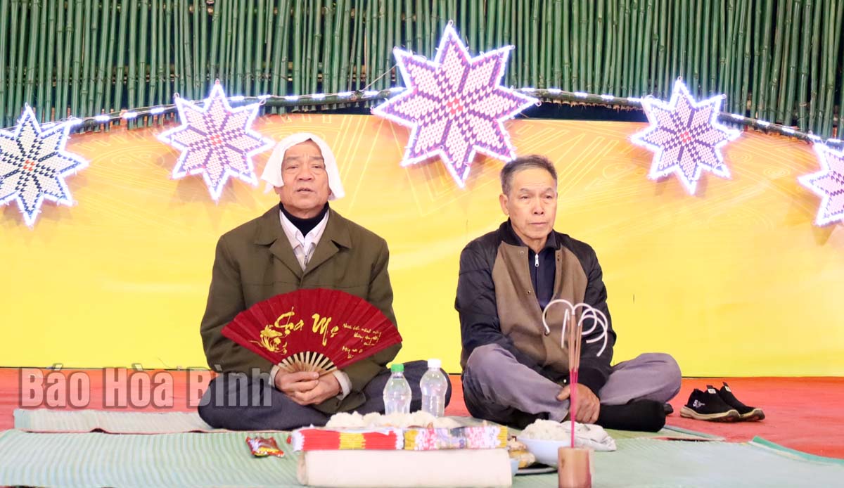 Nghệ nhân mo Mường Bùi Văn Lựng thực hiện nghi thức tín ngưỡng trong Lễ hội Khai hạ dân tộc Mường tỉnh năm 2023.