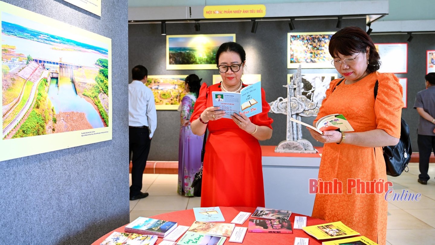 Bên lề chương trình, không gian trưng bày chuyên đề “Bình Phước tình đất, tình người qua các tác phẩm văn học, nghệ thuật tiêu biểu” thu hút đông đảo đại biểu tham quan, thưởng lãm.