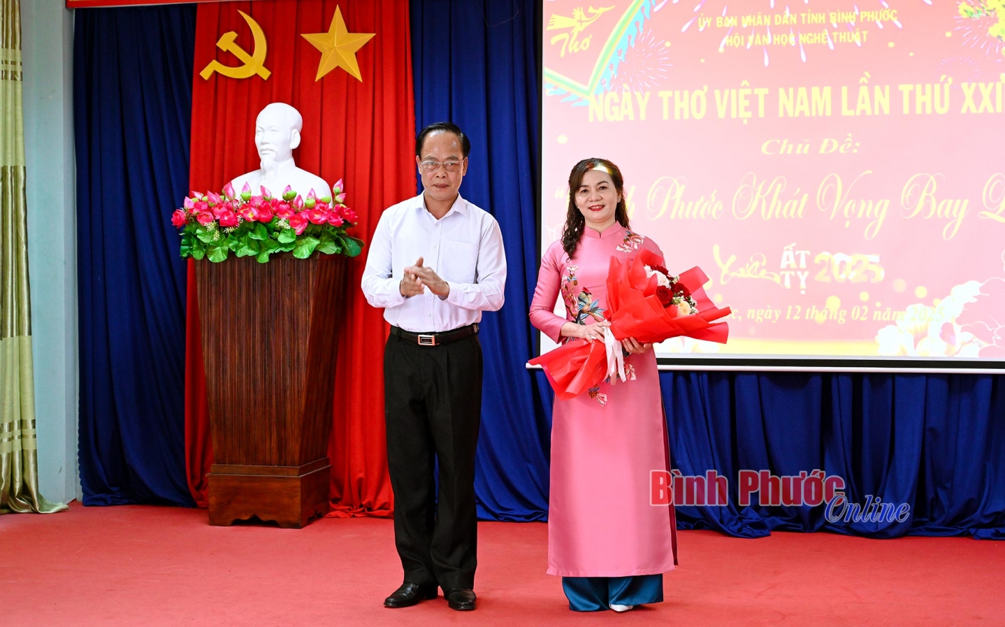 BPO – Nhân dịp tết Nguyên tiêu năm Ất Tỵ 2025 và Ngày thơ Việt Nam, sáng 12-2, tại Bảo tàng tỉnh, Hội Văn học nghệ thuật (VHNT) tỉnh tổ chức Ngày thơ Việt Nam lần thứ 23 năm 2025 với chủ đề “Bình Phước khát vọng bay lên”. Ủy viên Ban Thường vụ, Trưởng Ban Tuyên giáo Tỉnh ủy Vũ Tiến Điền; lãnh đạo một số sở, ban, ngành, đoàn thể, đơn vị của tỉnh tham dự chương trình.