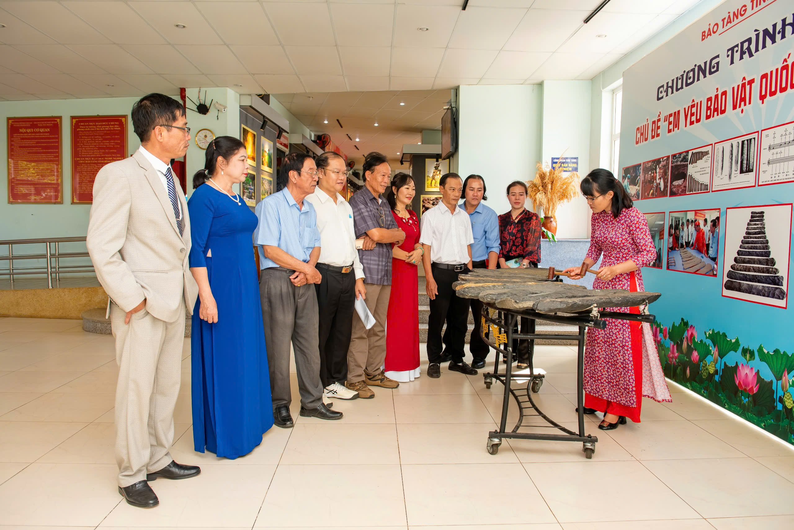 Các đại biểu cũng được tham quan phòng trưng bày cố định tại Bảo tàng và được nghe giới thiệu những nét đặc trưng nhất của Bình Phước trên các lĩnh vực, với hàng trăm hiện vật, hình ảnh, tư liệu về lịch sử kháng chiến, văn hóa khảo cổ, văn hóa tộc người tiêu biểu được bố trí trưng bày đa dạng và sinh động, đặc biệt các đại biểu còn được thưởng thức những âm thanh trầm bổng của bản chế tác bảo vật quốc gia đàn đá Lộc Hòa do viên chức Bảo tàng tỉnh trình diễn.
