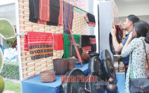 Sản phẩm thổ cẩm của đồng bào S’tiêng được trưng bày, giới thiệu tại các hoạt động triển lãm