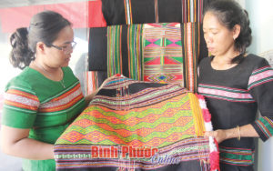 Sản phẩm thổ cẩm của đồng bào S’tiêng dệt thủ công nên chắc chắn, độc đáo về hoa văn nhưng tốn nhiều thời gian dẫn đến giá thành cao, khó tiêu thụ