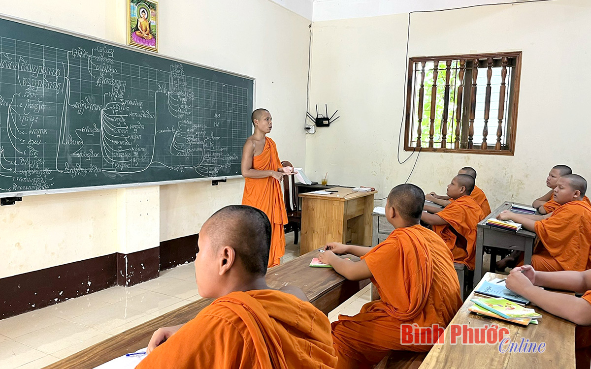 Cũng giống như rất nhiều ngôi chùa của người Khmer ở các vùng khác, vào dịp hè, chùa Sóc Lớn ở xã Lộc Khánh (huyện Lộc Ninh) luôn rộn ràng, tấp nập người dân đến học chữ Khmer. Có lớp dành cho các sư trong chùa, cũng có lớp dành cho học sinh và một lớp tổ chức buổi tối dành cho nhóm người cao tuổi. Chùa vừa là nơi dạy chữ đồng thời cũng là địa điểm vui chơi bổ ích ngày hè dành cho trẻ, nên lớp học dành cho nhóm này thường được tổ chức ban ngày. Một buổi học thường bắt đầu từ 7 giờ 30 phút đến 10 giờ 30 phút và 13 giờ 30 phút đến 16 giờ 30 phút.
