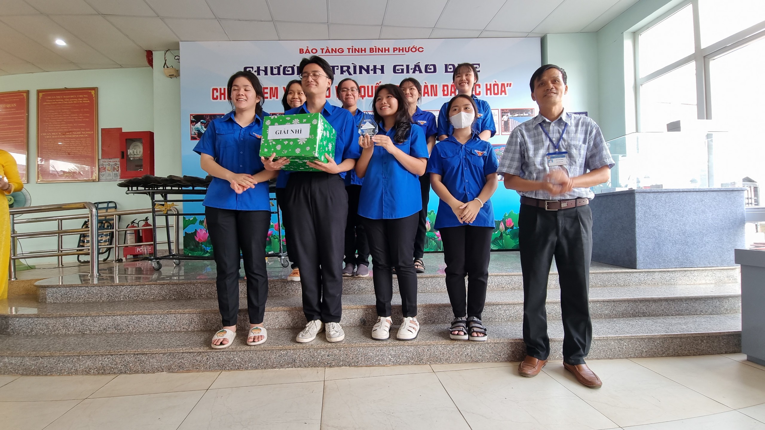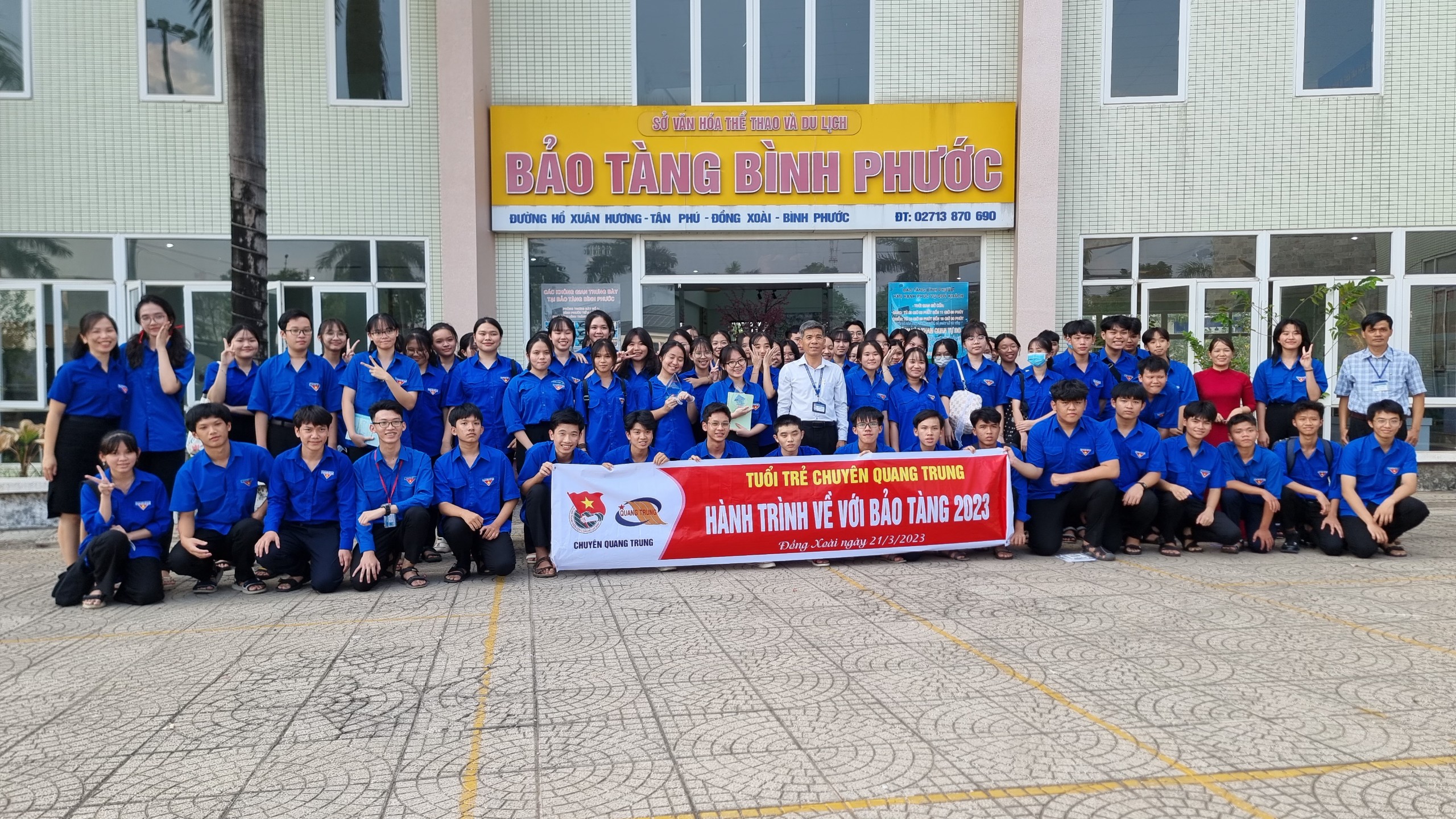 Đến với Bảo tàng tỉnh cô và trò Trường THPT chuyên Quang Trung được cán bộ thuyết minh chia ra làm 02 nhóm để thực hiện tham quan không gian trưng bày hình ảnh, tư liệu và hiện vật về Di sản văn hóa Bình Phước. Kết thúc phần tham quan, giáo viên của Trường THPT chuyên Quang Trung đã chọn ra 30 em học sinh giỏi về lịch sử, văn hoá địa phương và chia làm 03 đội để tham gia vào trương trình chủ đề “Em yêu Bảo vật quốc gia Đàn đá Lộc Hòa”.