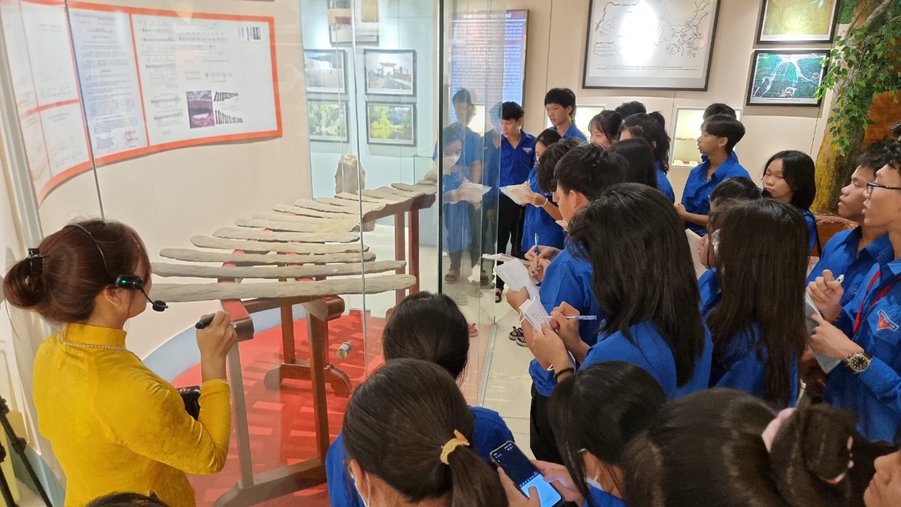 Học sinh Trường THPT chuyên Quang Trung tham gia hoạt động trải nghiệm ngoại khoá với chủ đề “Em yêu Bảo vật quốc gia Đàn đá Lộc Hòa” tại Bảo tàng tỉnh.