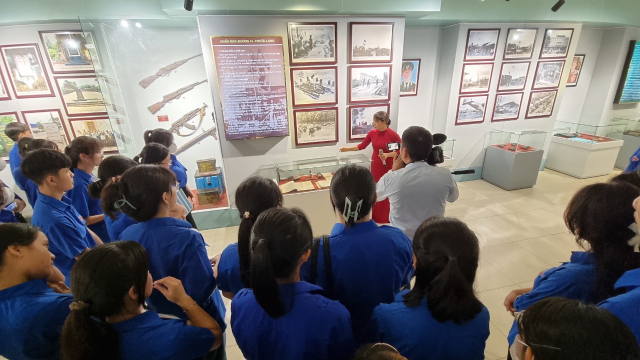 Giáo viên và học sinh Trường THPT chuyên Quang Trung tham quan trải nghiệm thực tế tại Bảo tàng. Ảnh: Bảo Nguyên.