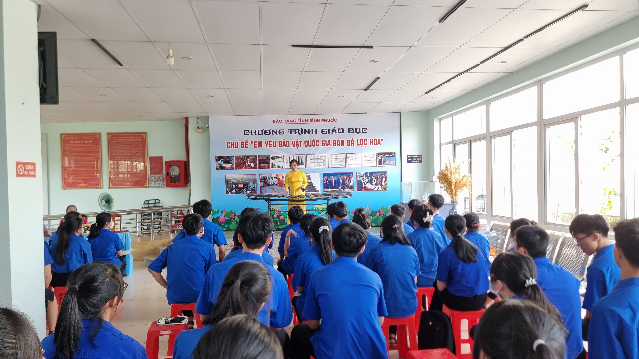 Với mong muốn phổ biến những giá trị di sản văn hóa truyền thống đến gần hơn với thế hệ trẻ, từ đó nâng cao lòng yêu mến, ý thức bảo vệ di sản của cha ông cho các em học sinh và cụ thể hoá chương trình phối hợp. Bảo tàng tỉnh tổ chức hoạt động ngoại khoá với chủ đề “Em yêu Bảo vật quốc gia Đàn đá Lộc Hòa” cho các em học sinh THPT và THCS trên địa bàn thành phố Đồng Xoài.