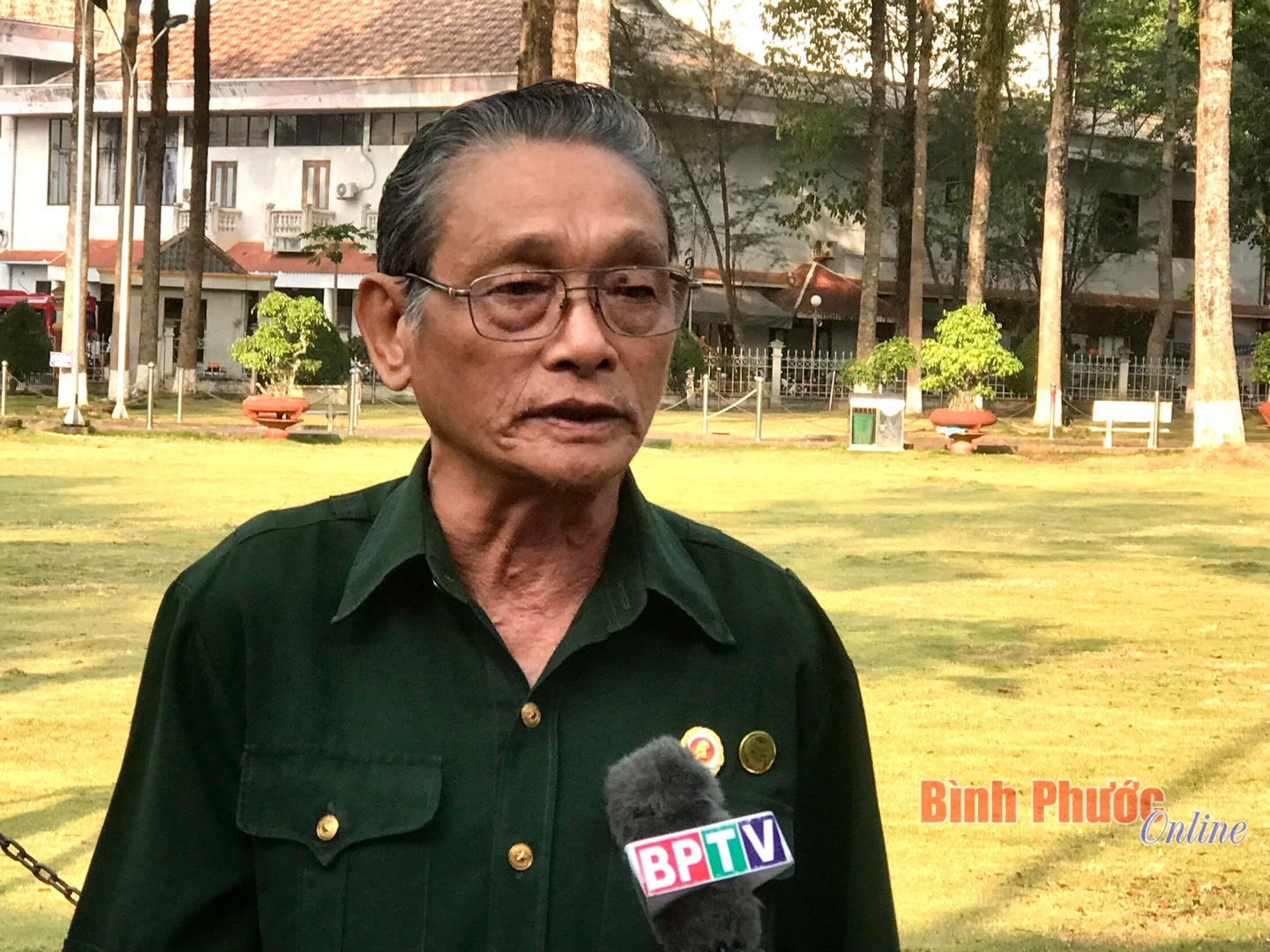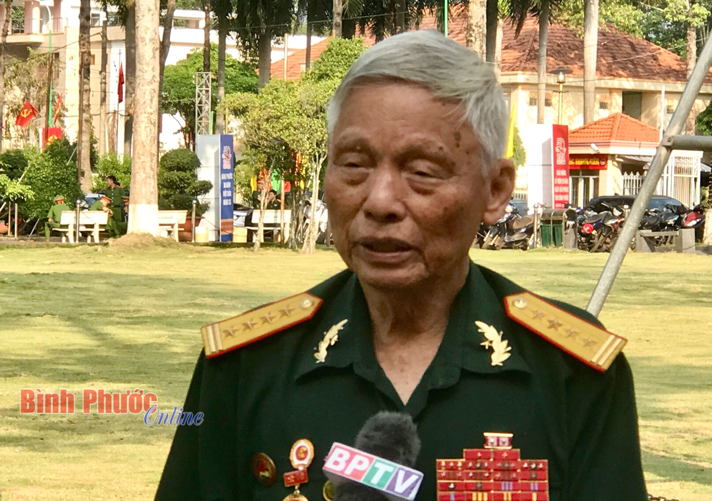Hôm nay tôi có mặt ở Quảng trường 23-3, thành phố Đồng Xoài dự Lễ kỷ niệm 50 năm Ngày giải phóng tỉnh Bình Phước, thật sự thấy rất vui khi rất đông cựu chiến binh từng chiến đấu ở Bình Phước về dự. Điều này thể hiện rằng, lãnh đạo tỉnh rất quan tâm, nhớ đến những người đã từng hy sinh, đóng góp, cống hiến cho Bình Phước. Có thể nói, so với vùng miền Đông Nam Bộ, tỉnh Bình Phước đang phát triển rất mạnh, là vùng đất năng động, nghĩa tình. Điều này có được là nhờ sự hợp lực rất nhiều yếu tố. Và tôi tin tưởng hoàn toàn vào thế hệ trẻ Bình Phước sẽ xây dựng quê hương ngày càng giàu đẹp hơn.