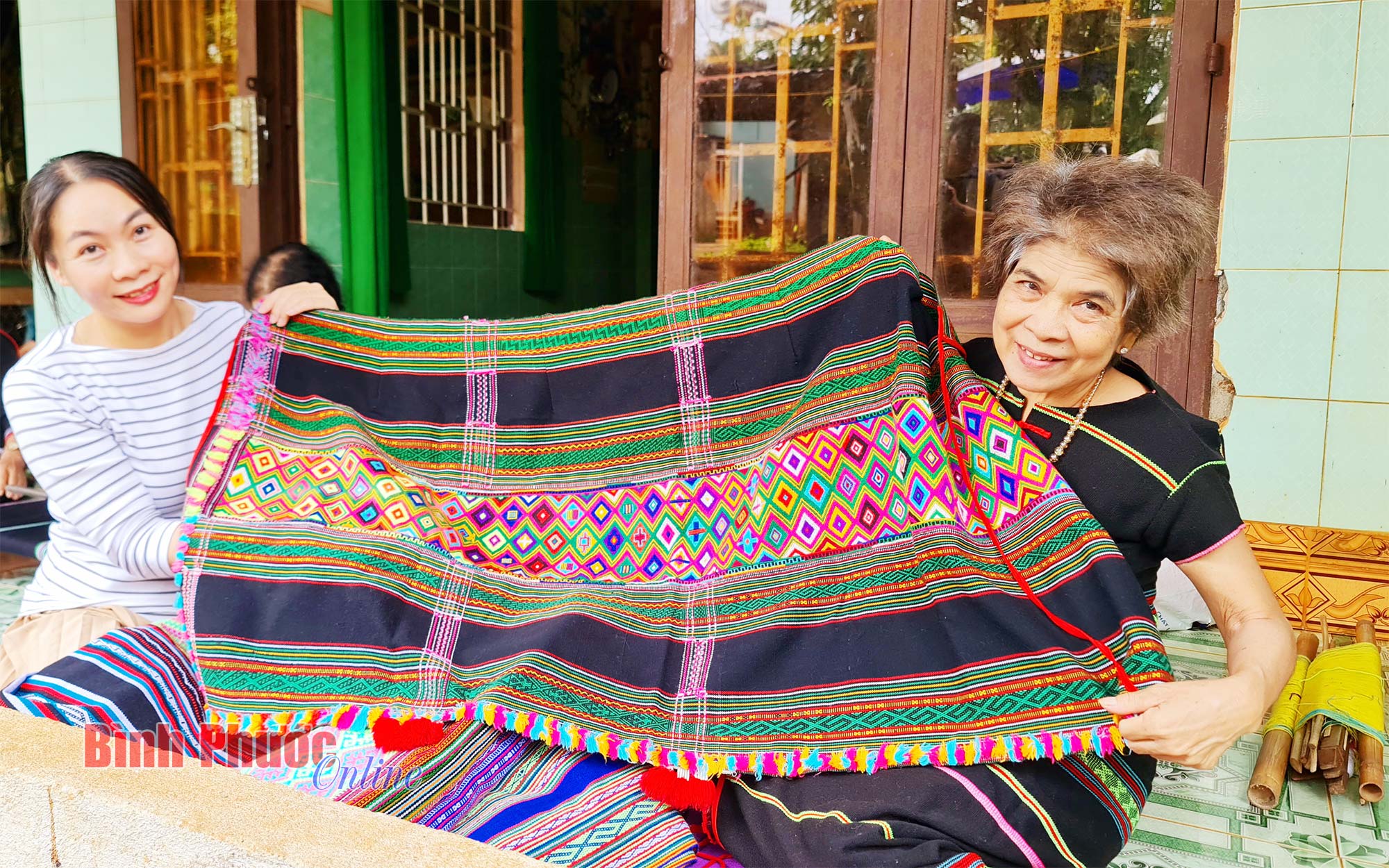 Ông Phạm Anh Tuấn, Phó trưởng phòng Văn hóa – Thông tin huyện Bù Đăng cho biết: Từ năm 2006, Sở Khoa học và Công nghệ tổ chức đề án truyền dạy nghề truyền thống của dân tộc M’nông, trong đó có nghề dệt thổ cẩm. Lúc đó, bà con mừng lắm, nghề của họ lại được truyền dạy và chính giáo viên là những người lớn tuổi trong làng, trong sóc của họ. Từ cơ sở đó, năm 2015, 2016, Phòng Văn hóa – Thông tin huyện phối hợp với Bảo tàng tỉnh tiến hành khảo sát và lập danh mục những truyền thống tốt đẹp để lập hồ sơ công nhận di sản văn hóa, trong đó có nghề dệt thổ cẩm của người M’nông.