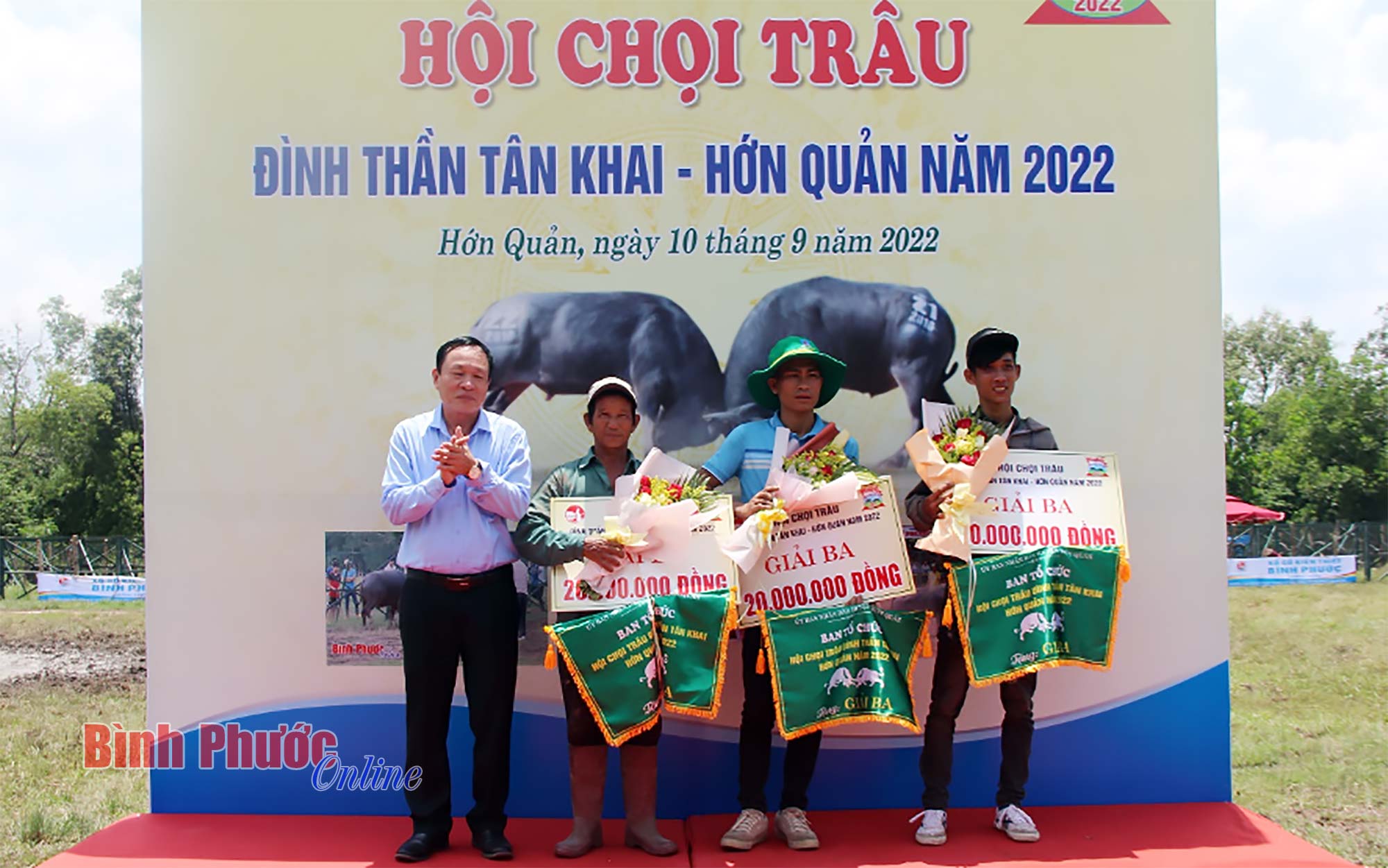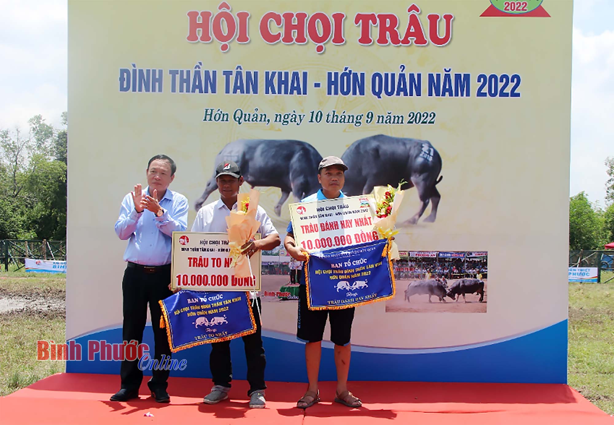 Sau một buổi diễn ra, Hội chọi trâu đình thần Tân Khai năm 2022 đã thành công tốt đẹp. Ban tổ chức đã trao 2 giải nhất, 2 giải nhì, 4 giải ba và các giải trâu to đẹp nhất, trâu có miếng đánh hay nhất cho các chủ trâu.