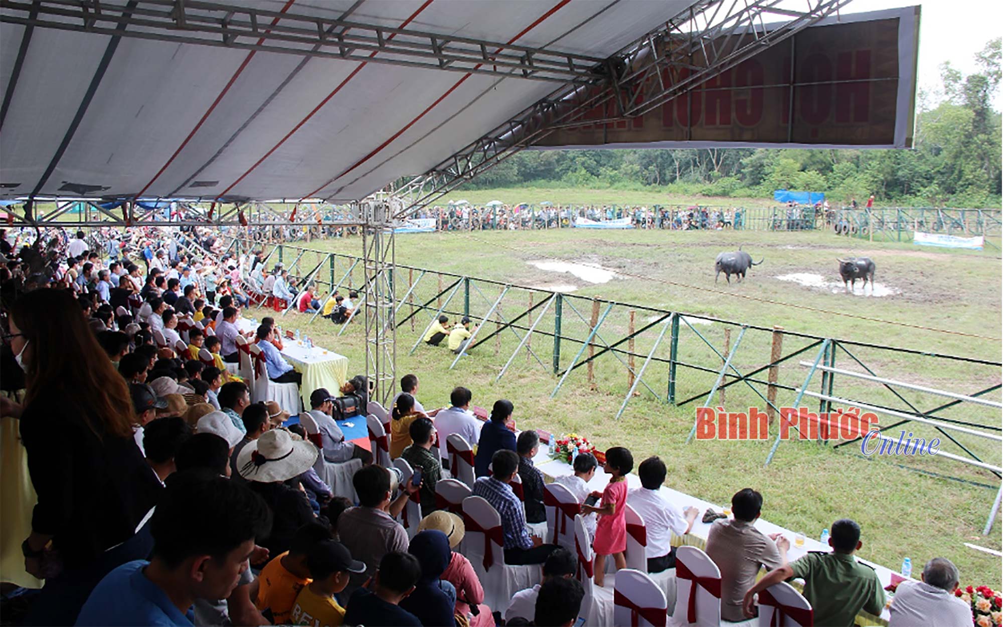 Đông đảo khán giả tham gia cổ vũ cho Hội chọi trâu đình thần Tân Khai, huyện Hớn Quản