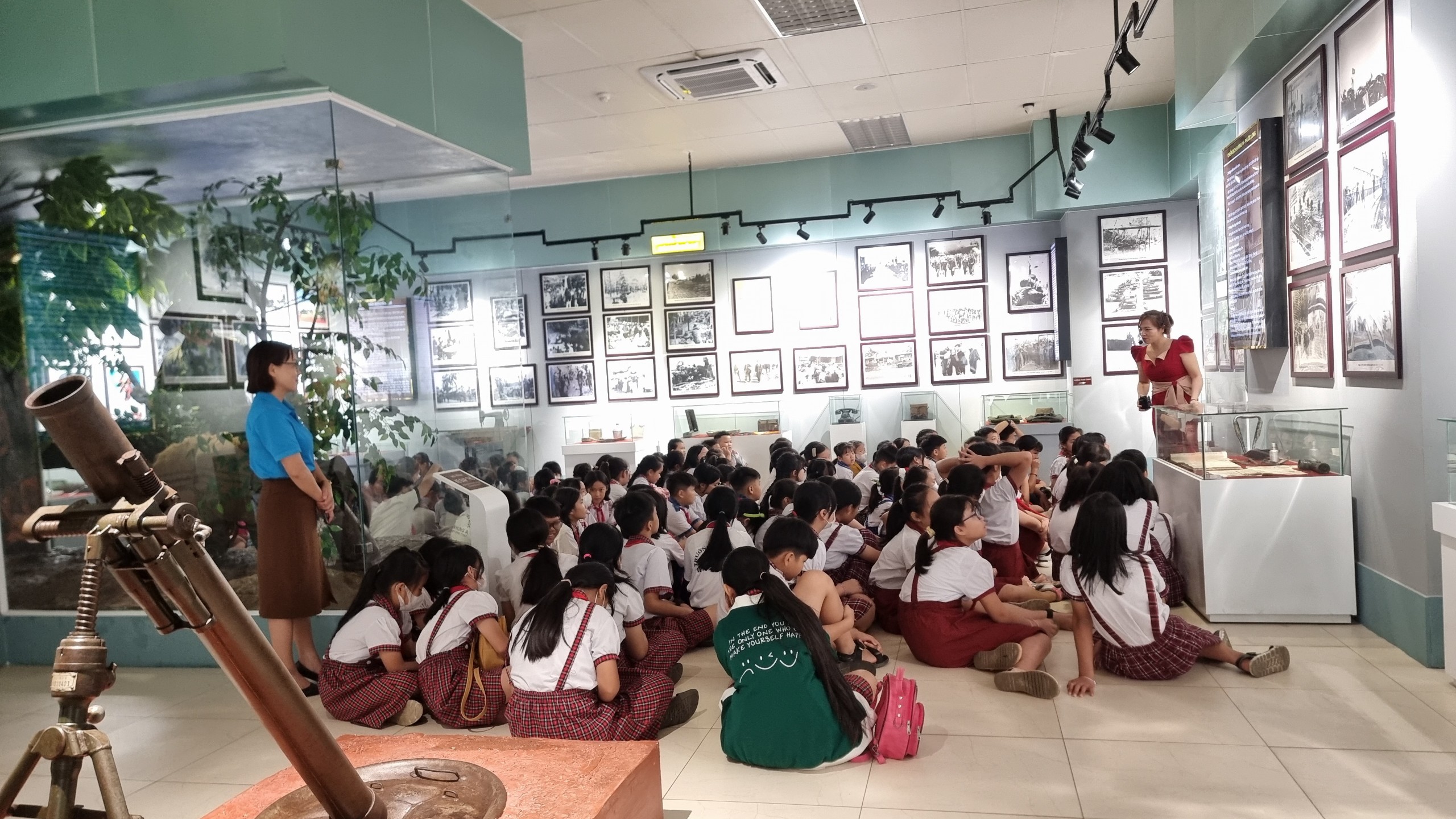 Học sinh của các Trường tiểu học trên địa bàn thàn phố Đồng Xoài đến tham quan trải nghiệm tại Bảo tàng tỉnh. Ảnh: Bảo Nguyên.
