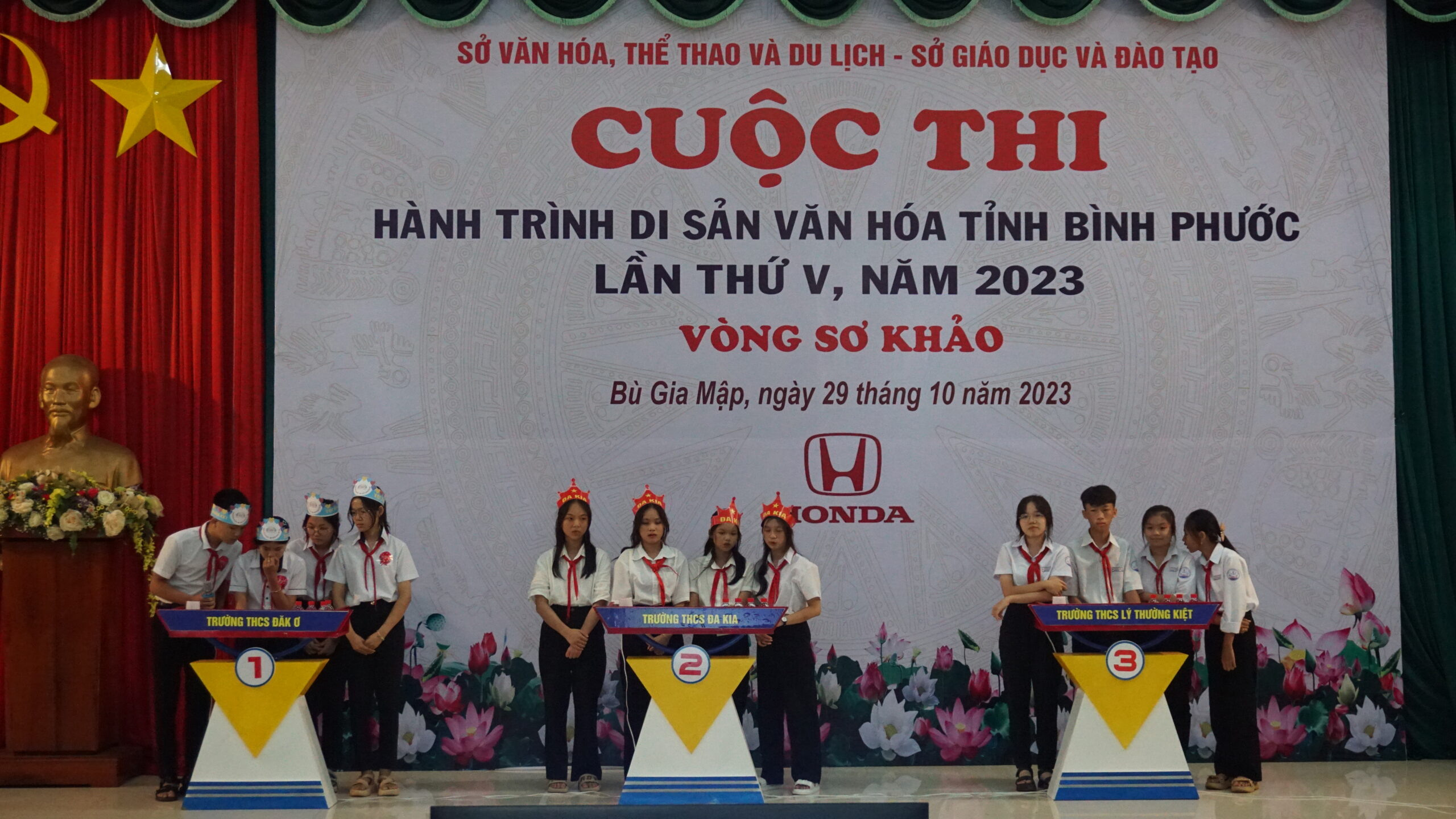 3 đội đã trải qua 4 phần thi, gồm: Khởi động, Ai nhanh tay hơn, Giải mã di sản, Em là thuyết minh viên. Nội dung tìm hiểu về hệ thống di tích tỉnh Bình Phước và các di sản văn hóa tiêu biểu của tỉnh; những đặc trưng về tỉnh Bình Phước…Cuộc thi nhằm tuyên truyền, quảng bá giá trị di sản văn hóa tỉnh Bình Phước nói riêng và di sản văn hóa Việt Nam nói chung đến nhân dân trong tỉnh, đặc biệt là các em học sinh. Qua đó, tạo sân chơi lành mạnh, bổ ích, giúp các em nâng cao kiến thức về lịch sử, văn hóa địa phương. Đồng thời đây là hoạt động thiết thực chào mừng kỷ niệm Ngày Di sản văn hóa Việt Nam 23/11, kỷ niệm Ngày Nhà giáo Việt Nam 20/11. Thông qua những giá trị của di sản văn hóa, khơi dậy, củng cố, bồi đắp tình yêu quê hương đất nước, lòng tự hào dân tộc, nâng cao ý thức, trách nhiệm của các em trong việc giữ gìn và phát huy giá trị di sản văn hóa của dân tộc nói chung và của tỉnh Bình Phước nói riêng. Đồng thời tuyển chọn ra những đội có thành tích tốt nhất tham dự vòng chung kết sẽ diễn ra ngày 23/11/2023, tại hội trường Trung tâm hành chính thị xã Phước Long. Kết thúc vòng sơ khảo thứ ba cuộc thi, Ban Tổ chức đã trao giải nhất cho Trường THCS ĐaKia, giải nhì thuộc về Trường THCS Lý Thường Kiệt, giải ba thuộc về Trường THCS Đăc Ơ.