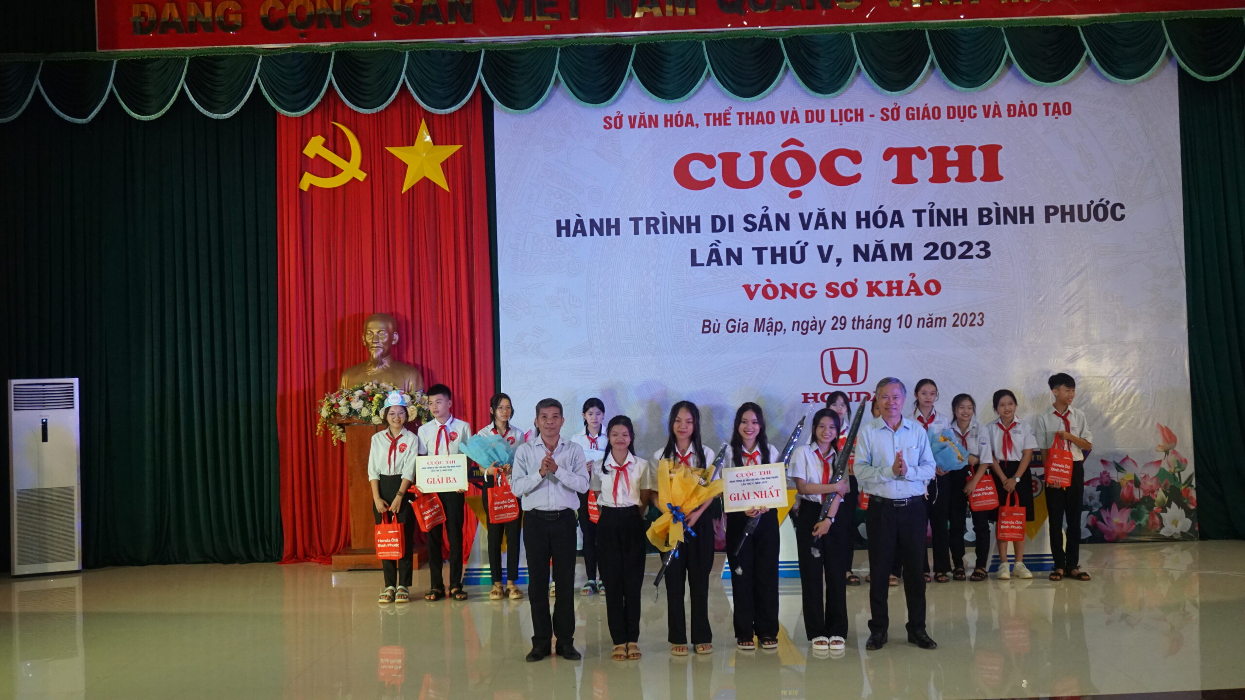 Sáng ngày 29-10, tại hội trường phòng GD-ĐT huyện Bù Gia Mập, Sở Văn hóa, Thể thao và Du lịch phối hợp với Sở Giáo dục và Đào tạo tổ chức vòng sơ khảo thứ ba cuộc thi “Hành trình di sản văn hóa tỉnh Bình Phước” lần thứ V năm 2023. Tham dự cuộc thi có 3 đội đến từ các trường Trung học cơ sở: Đắc Ơ, ĐaKia, Lý Thường Kiệt.